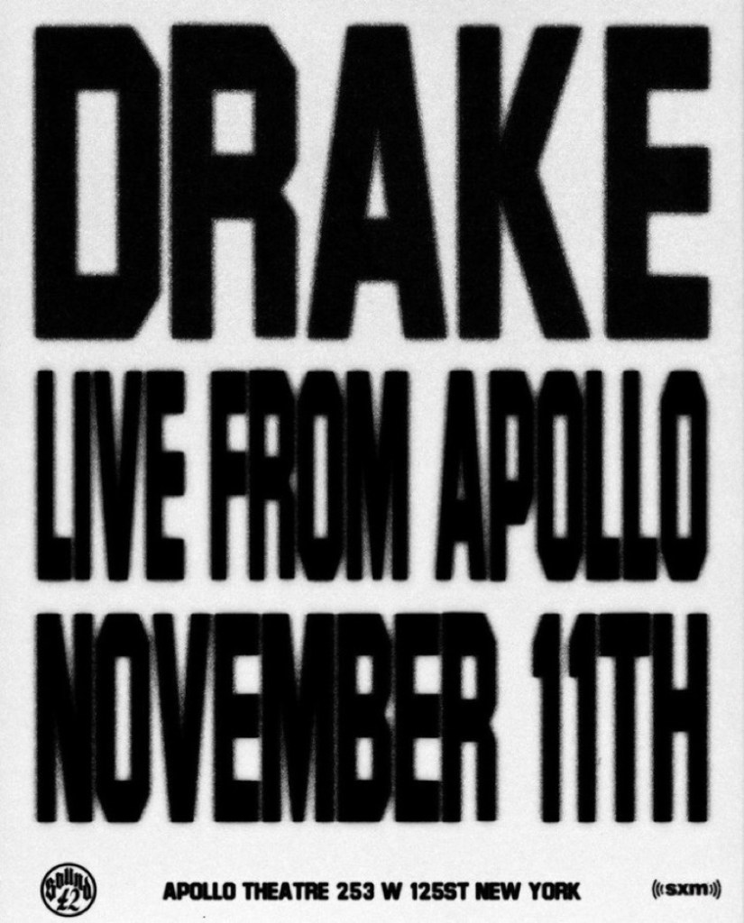 Drake announces a pop up show at The Apollo Theatre..