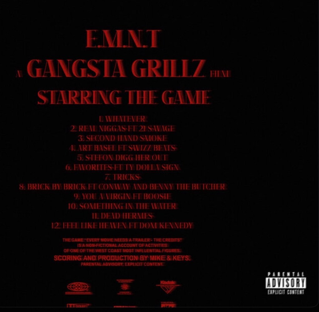 The Game is rewarding the tape, with the “Gangsta Grillz: The Game, DJ Drama, Mike & Keys “E.M.N.T – The Credits”. It’s essentially the deluxe extension or “credits” installment of The Game’s earlier mixtape Gangsta Grillz: Every Movie Needs a Trailer (E.M.N.T), which originally dropped late December 2025. The full project combines both parts on streaming platforms like Spotify (listed as one album with two discs), totaling 29 tracks and running about 1 hour 33 minutes. The new “The Credits” portion adds 12 fresh tracks (often treated as Disc 1), all produced entirely by Mike & Keys, with DJ Drama providing the signature Gangsta Grillz intros/tags. It features heavy-hitting guests including 21 Savage, Swizz Beatz, Ty Dolla $ign, Conway The Machine, Benny The Butcher, Boosie Badazz, Dom Kennedy, and others.